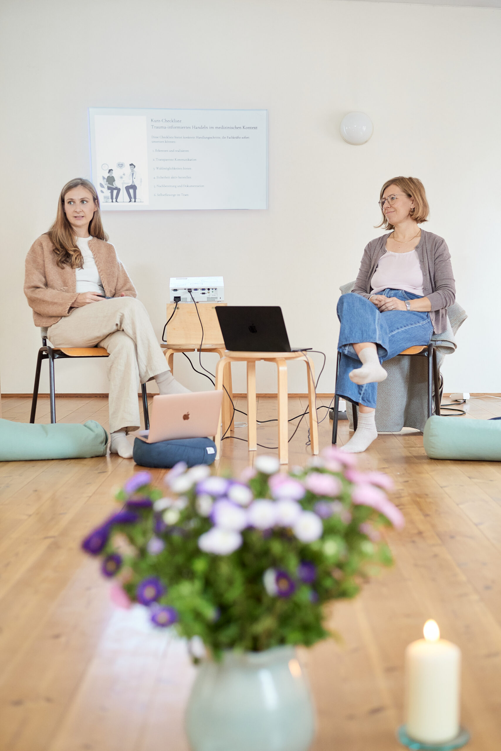 Neben unserer Ausbildung „Traumainformiert-Begleiten“ können Sie uns auch als Speakerinnen, Referentinnen und Weiterbildungspartnerinnen buchen.